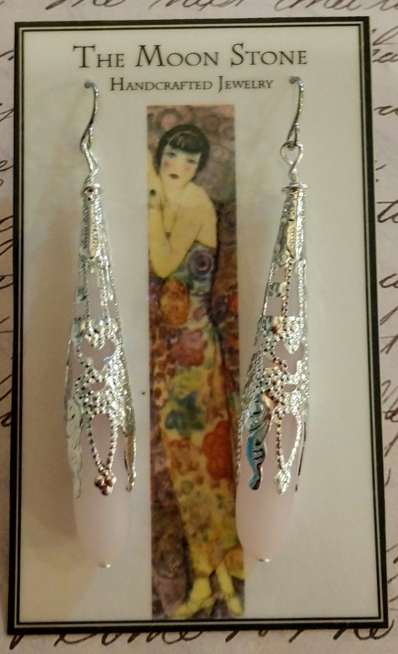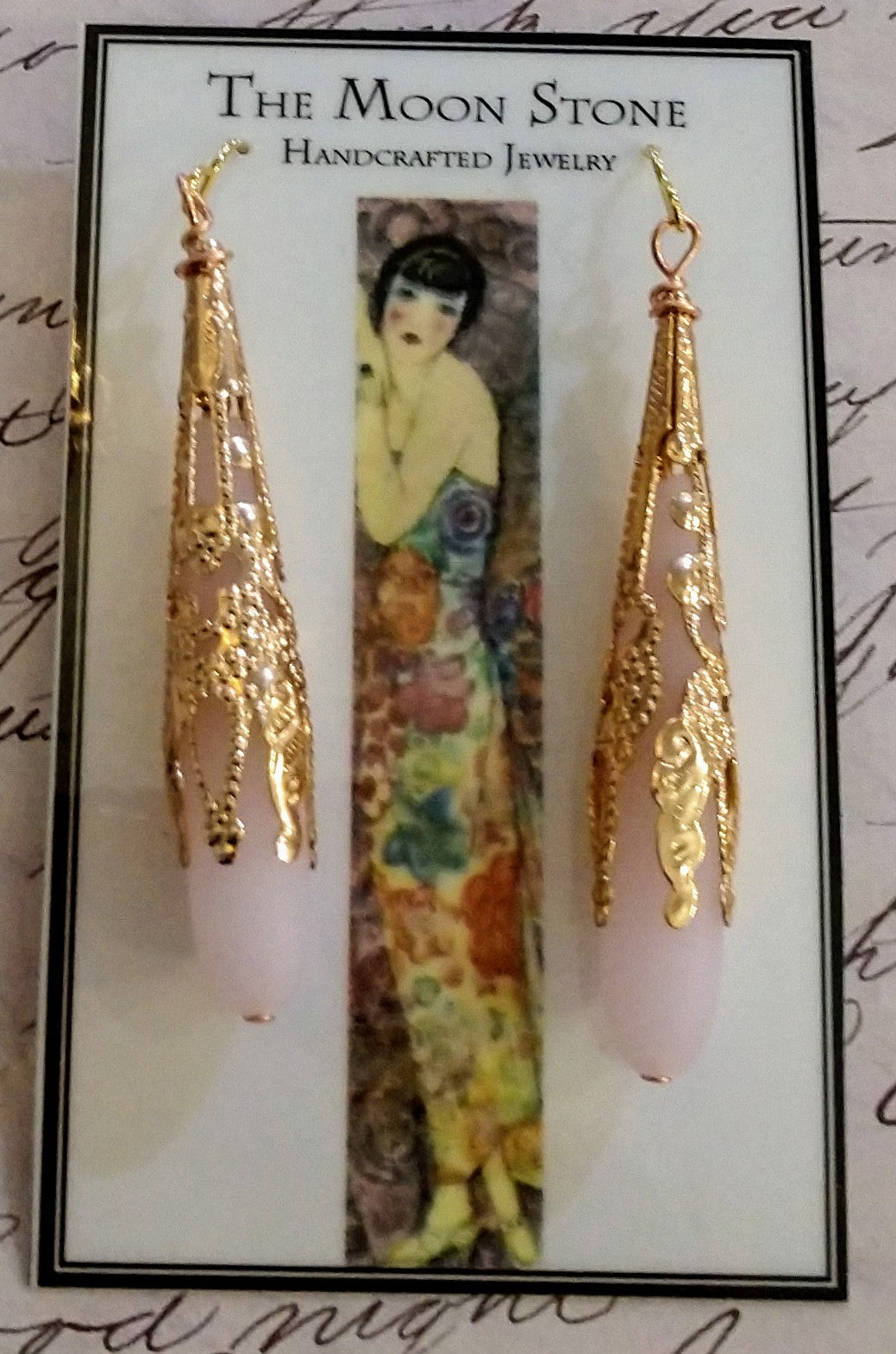 1920s Sea Glass Drop Earrings ~ Opaque Pink