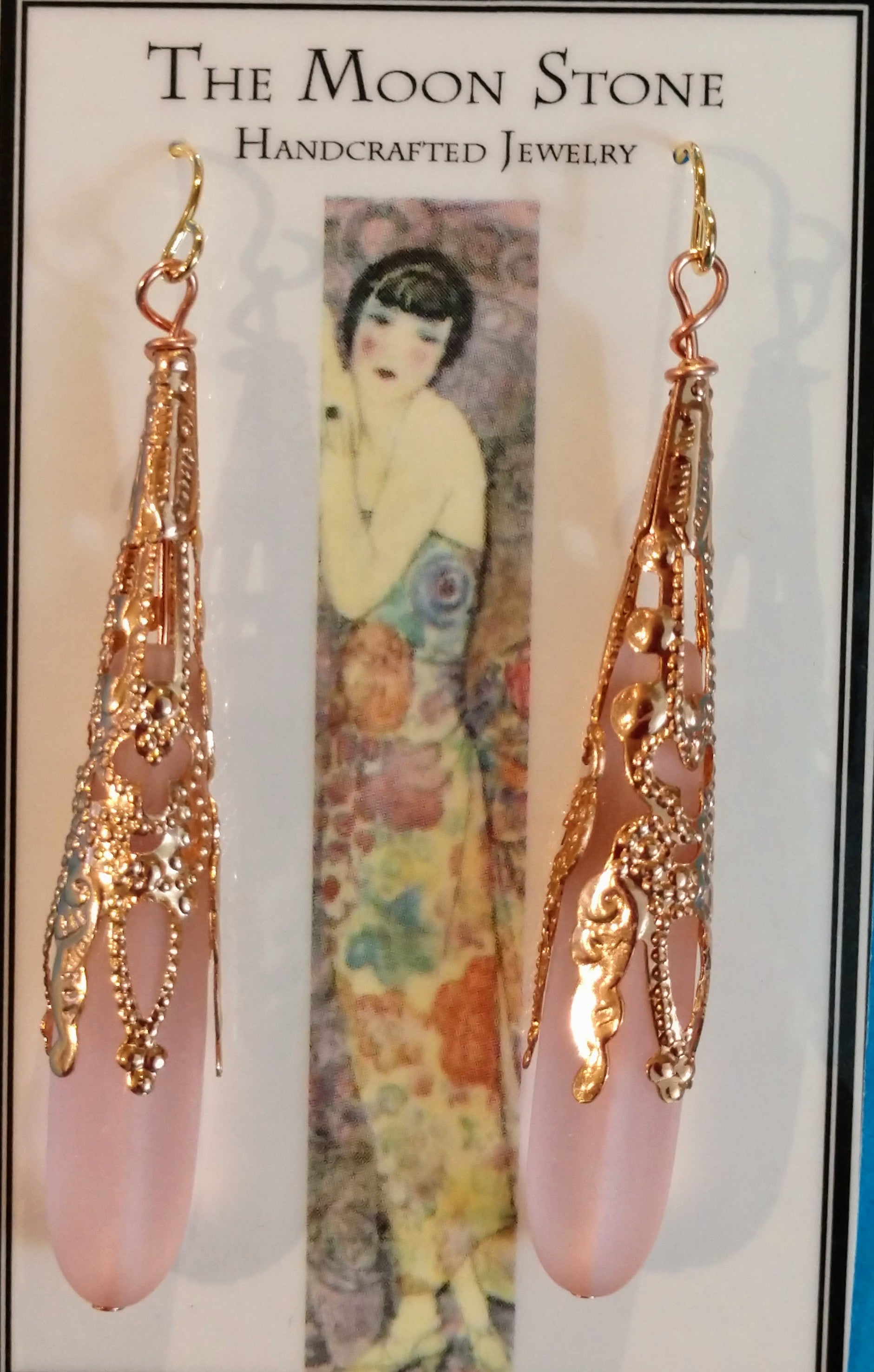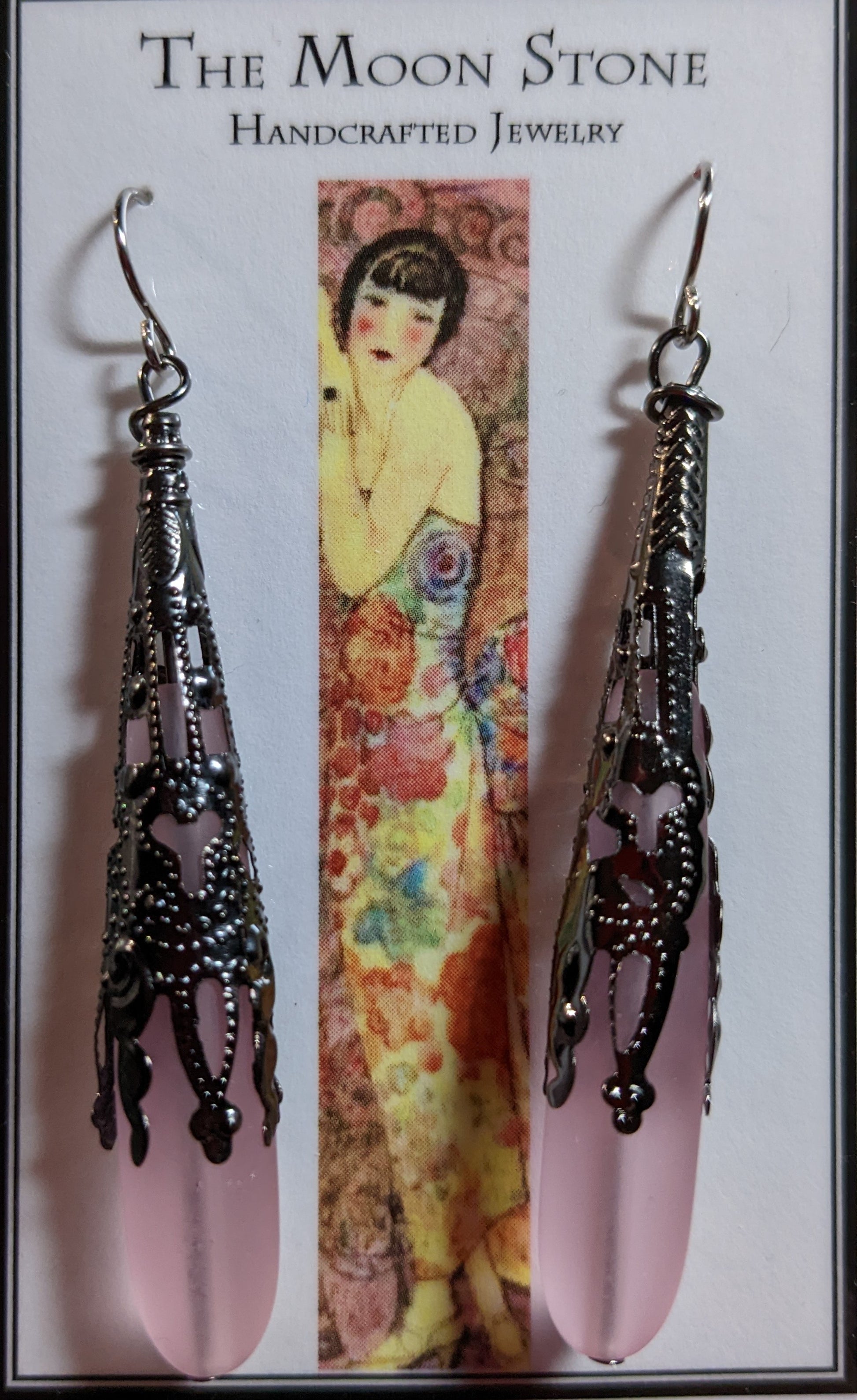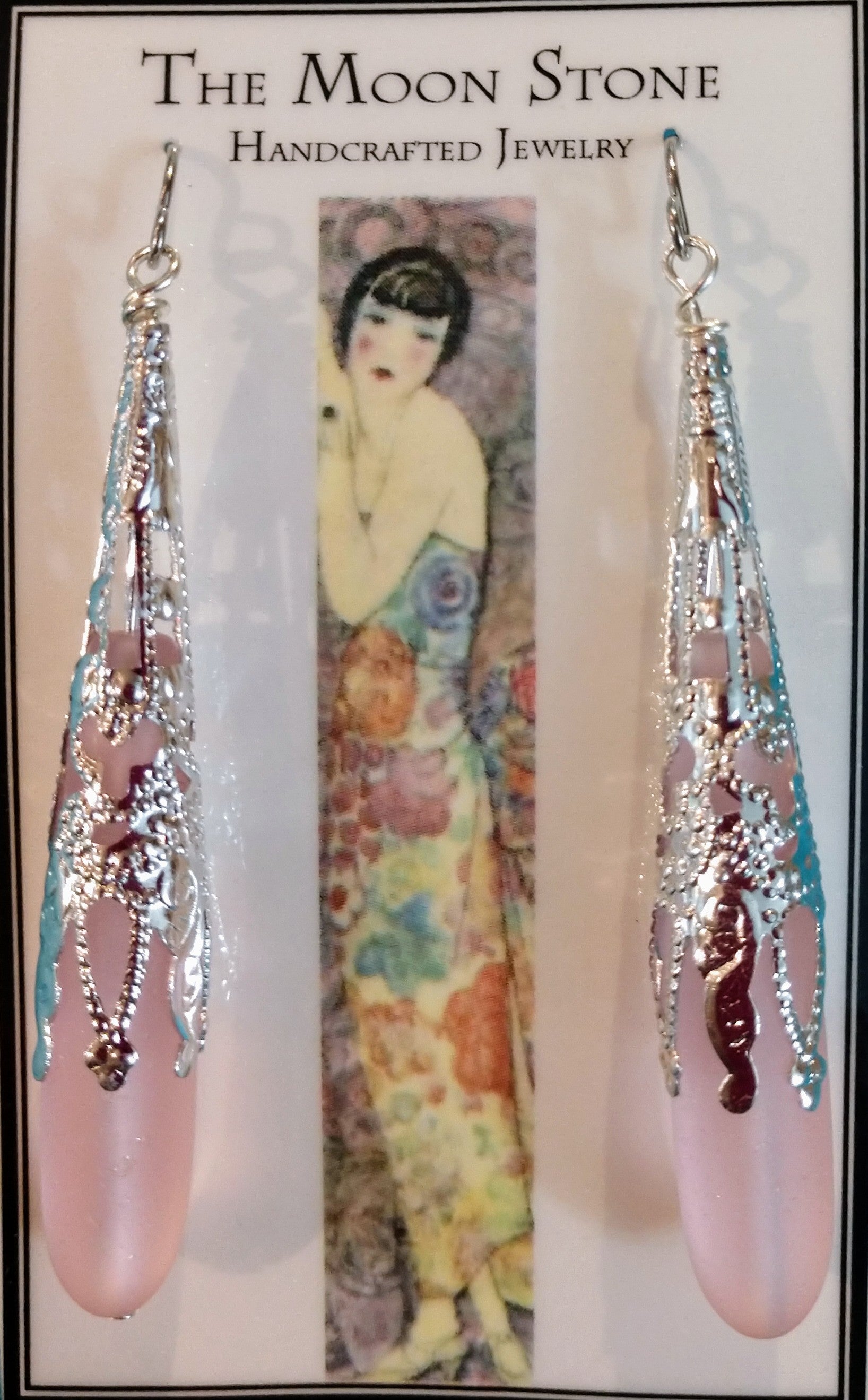 Silver-plated brass, surgical steel wires, and New England Sea Glass beads.