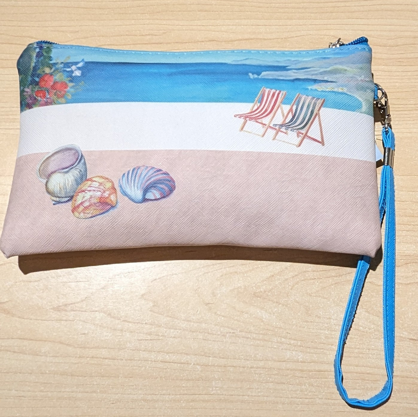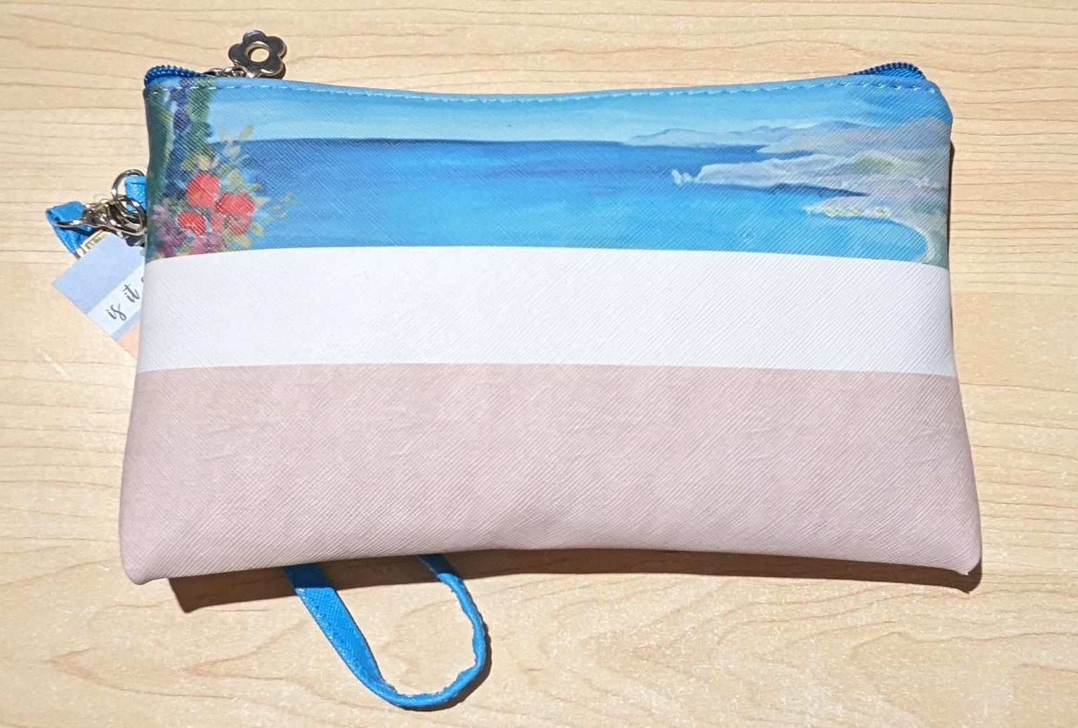 Beach-themed wristlet designed in Massachusetts and Italy and produced with all man-made materials. Vegan-friendly. A beautiful memento of Salem.