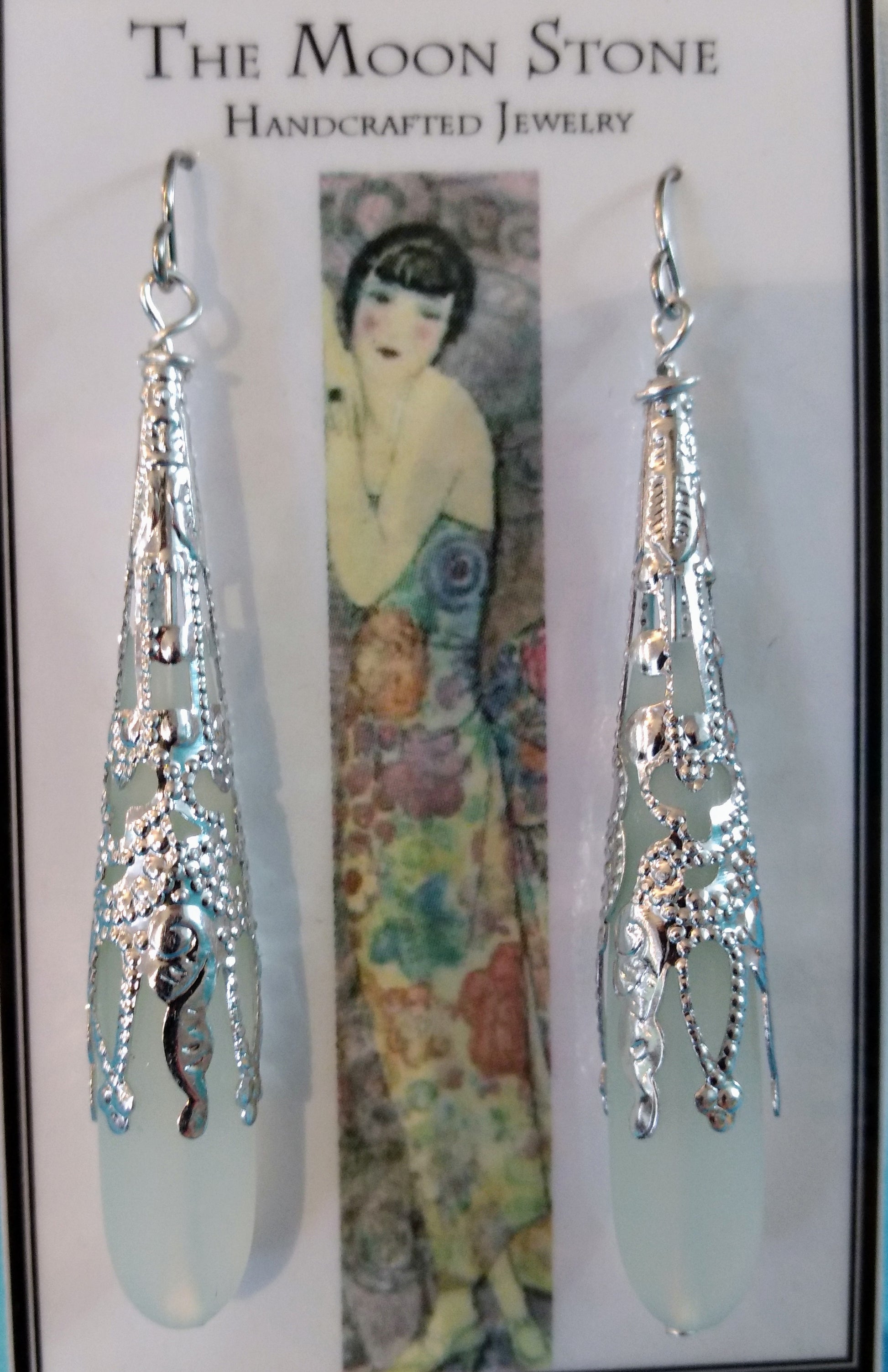 1920s Sea Glass Drop Earrings ~ Moonstone