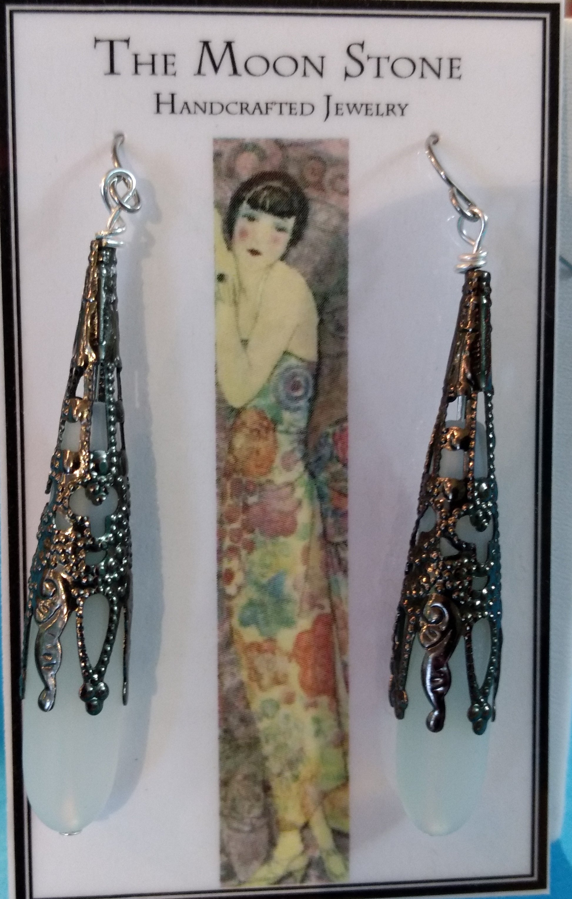 - Moonstone + "Gun-metal" Silver-plated brass