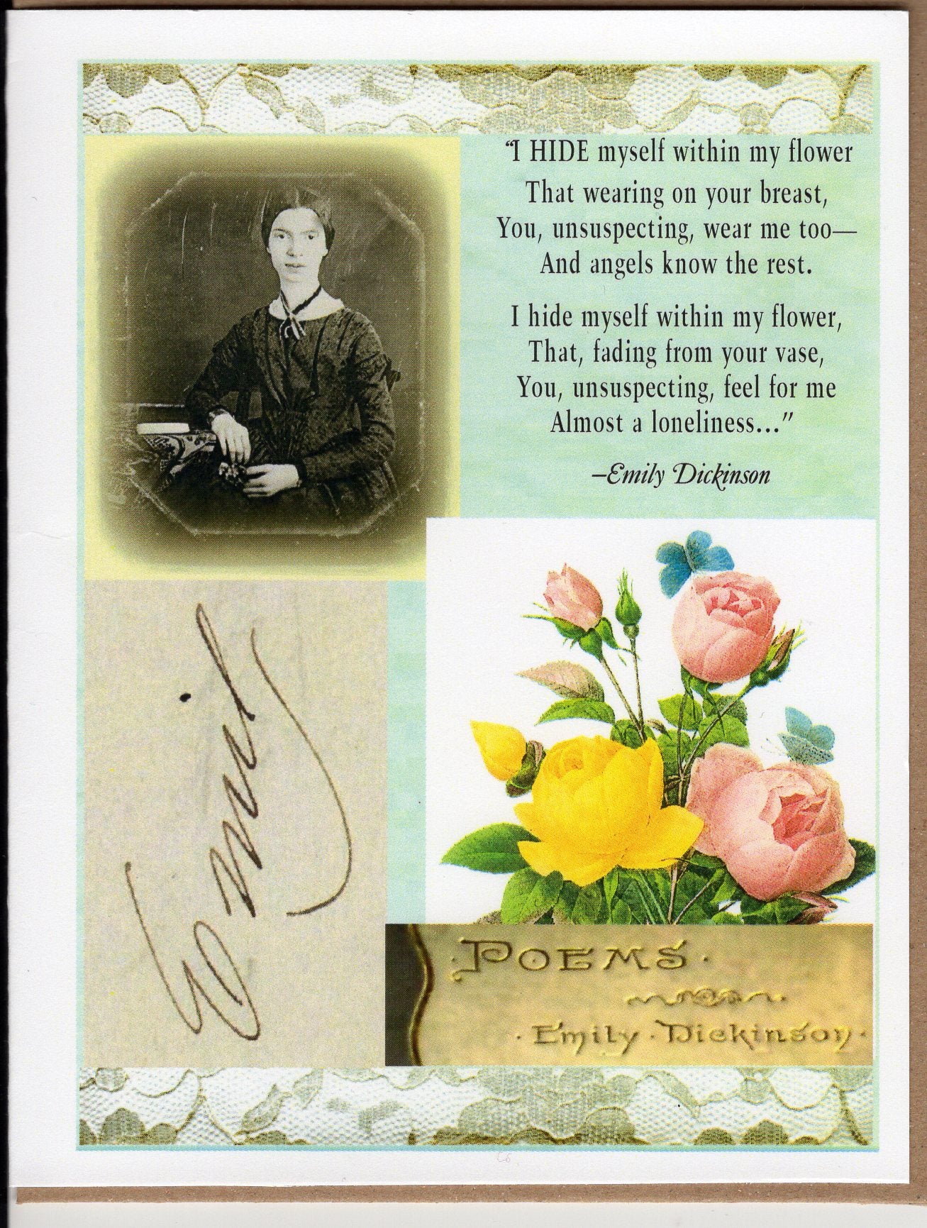 Inspired by antique images and a quote from one of her poems, this note card is a unique remembrance of the beloved Amherst poet.