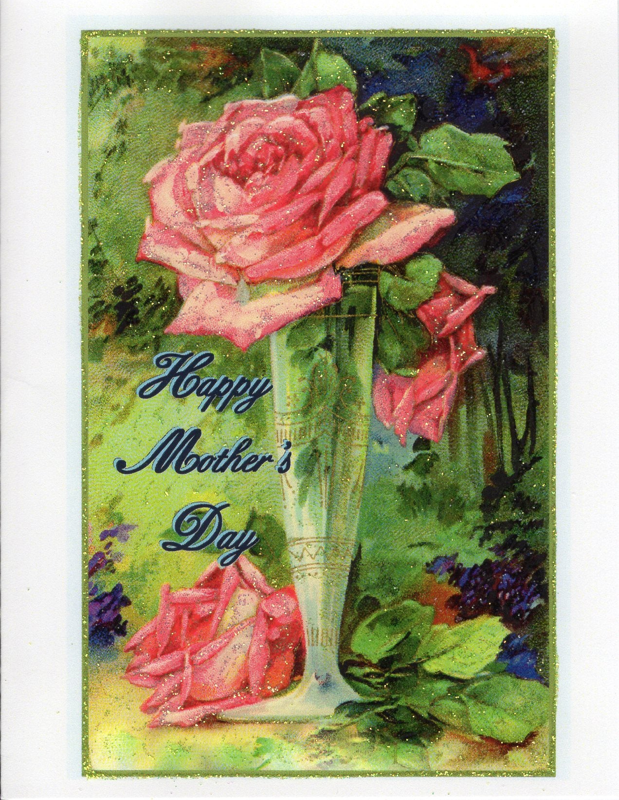 Inspired by an Edwardian-era postcard, this note card is very reminiscent of the period, delicately detailed with colored glitter. Many postcards and greeting cards in the 1800s and 1900s were embellished with a hint of the sender's glitter. Designed exclusively by The Marble Faun.