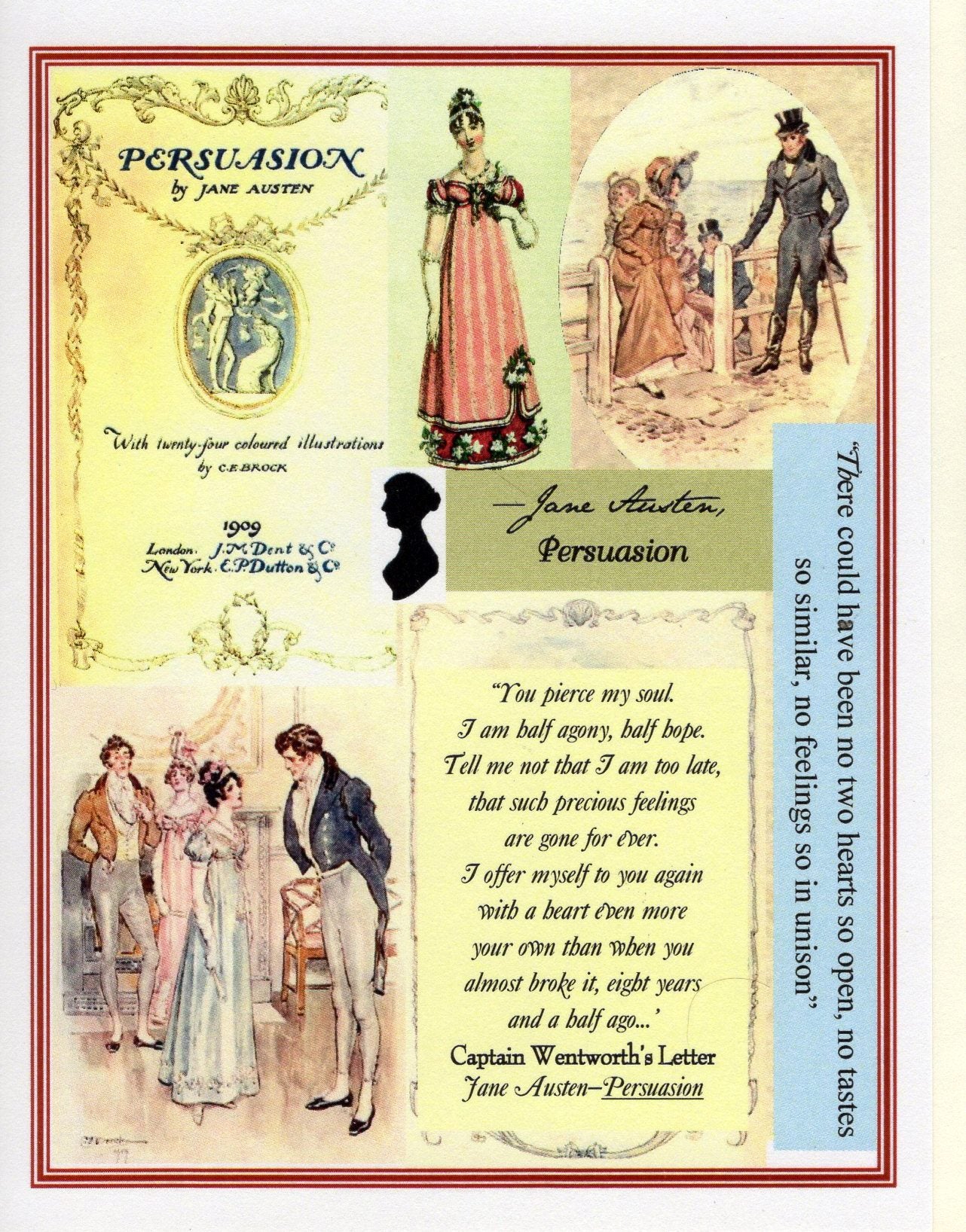 Inspired by Jane Austen's beloved novel about second chances, Persuasion, with excerpt of Captain Wentworth's letter to Anne Elliot and illustrations from the novel.