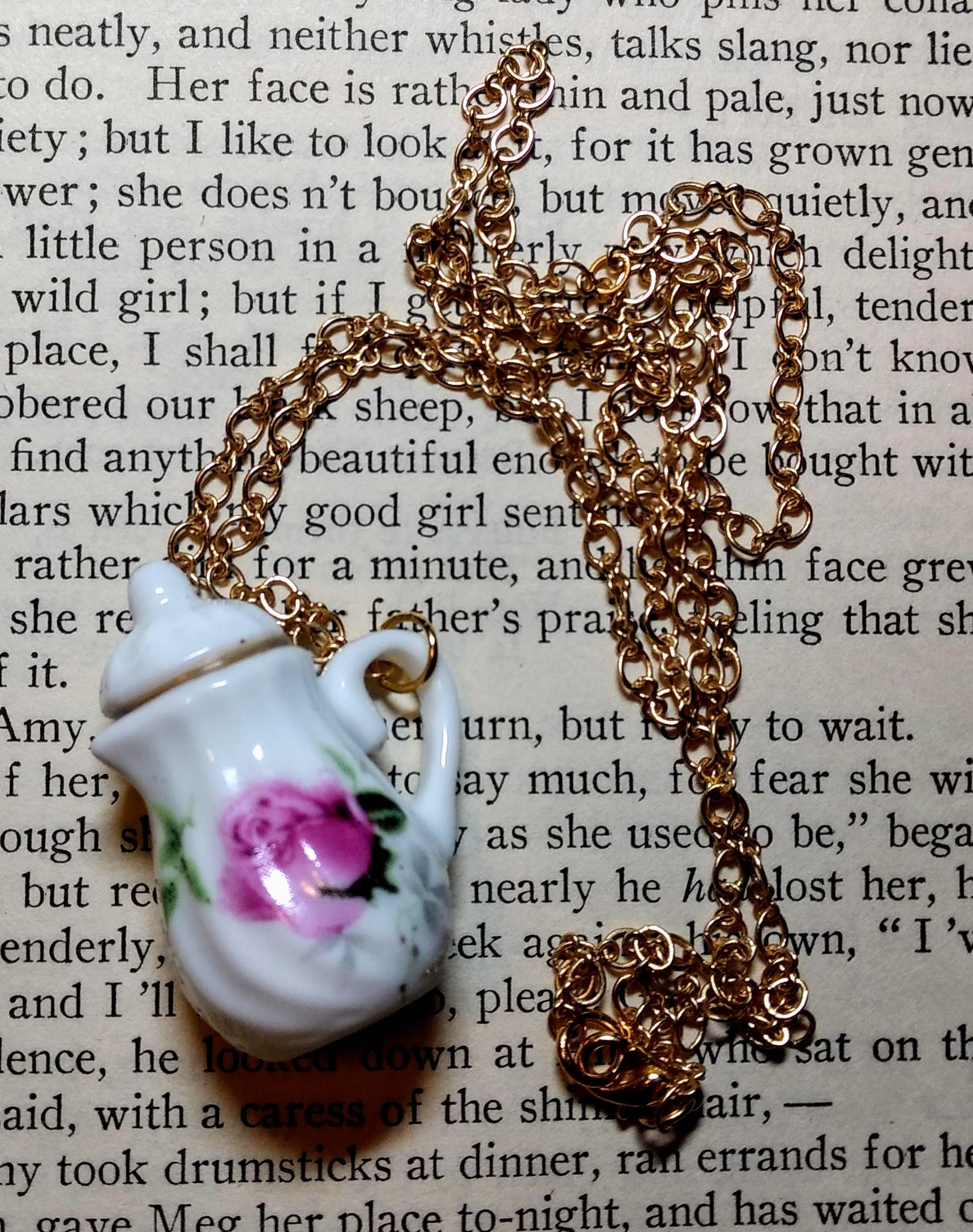 Pink Rosebud Teapot Necklace