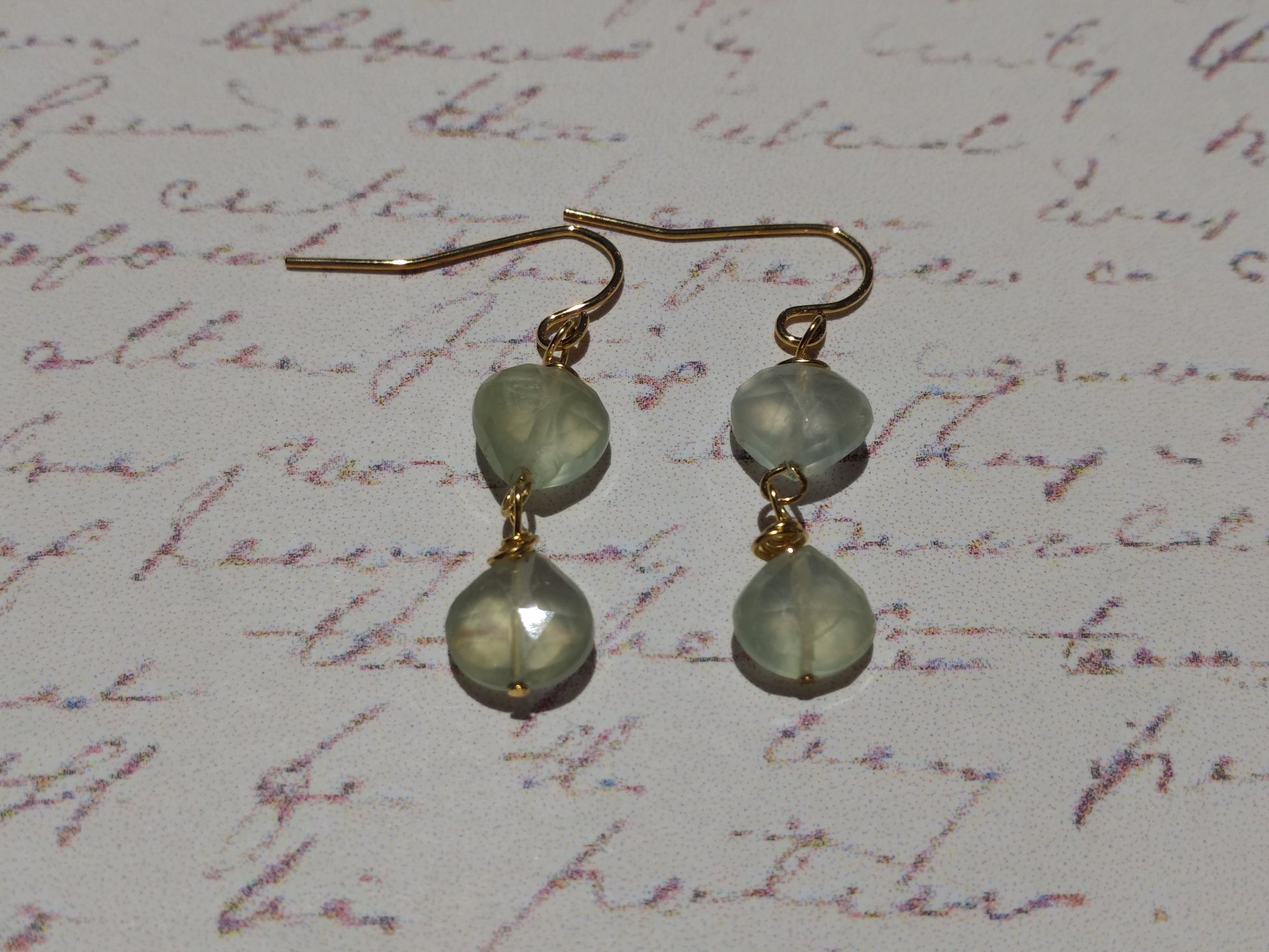 Prehnite Hearts Double Drop Earrings