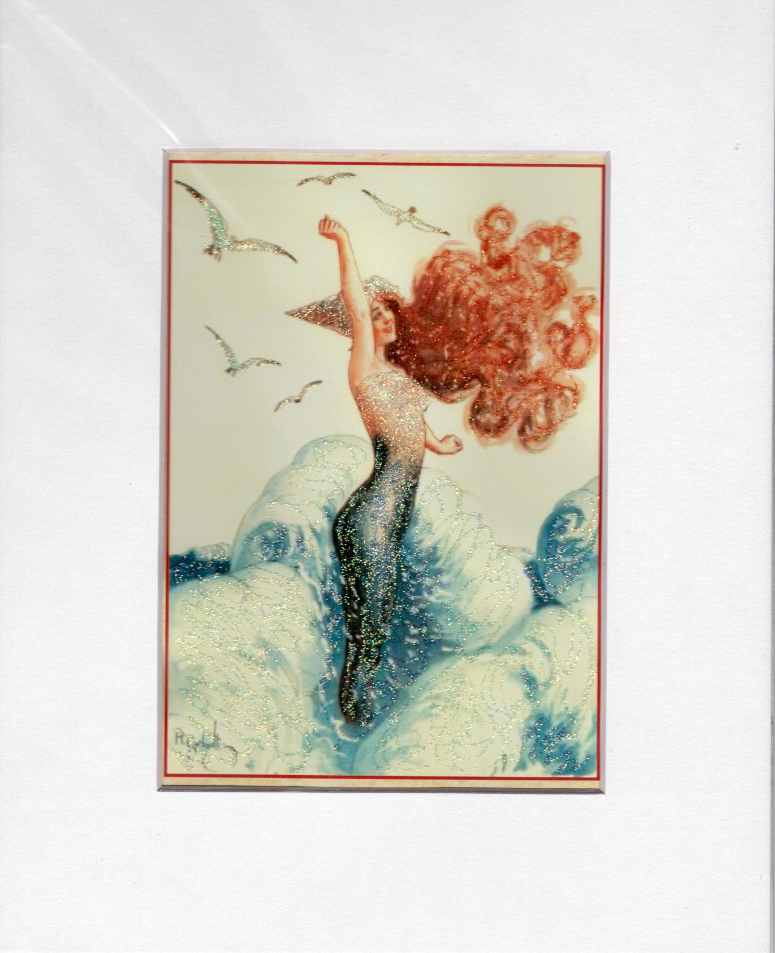 Red Siren Mermaid Glitter Print: 5x7 in 8x10 Mat