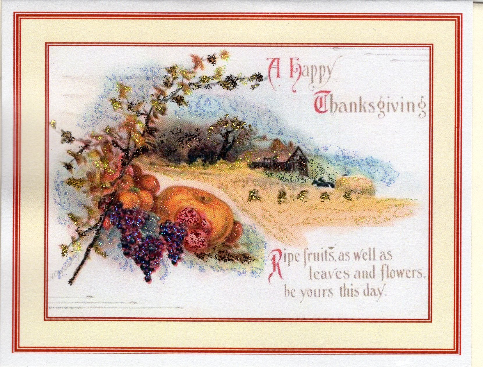 A Happy Thanksgiving ~ Ripe Fruits Thanksgiving Glitter Card