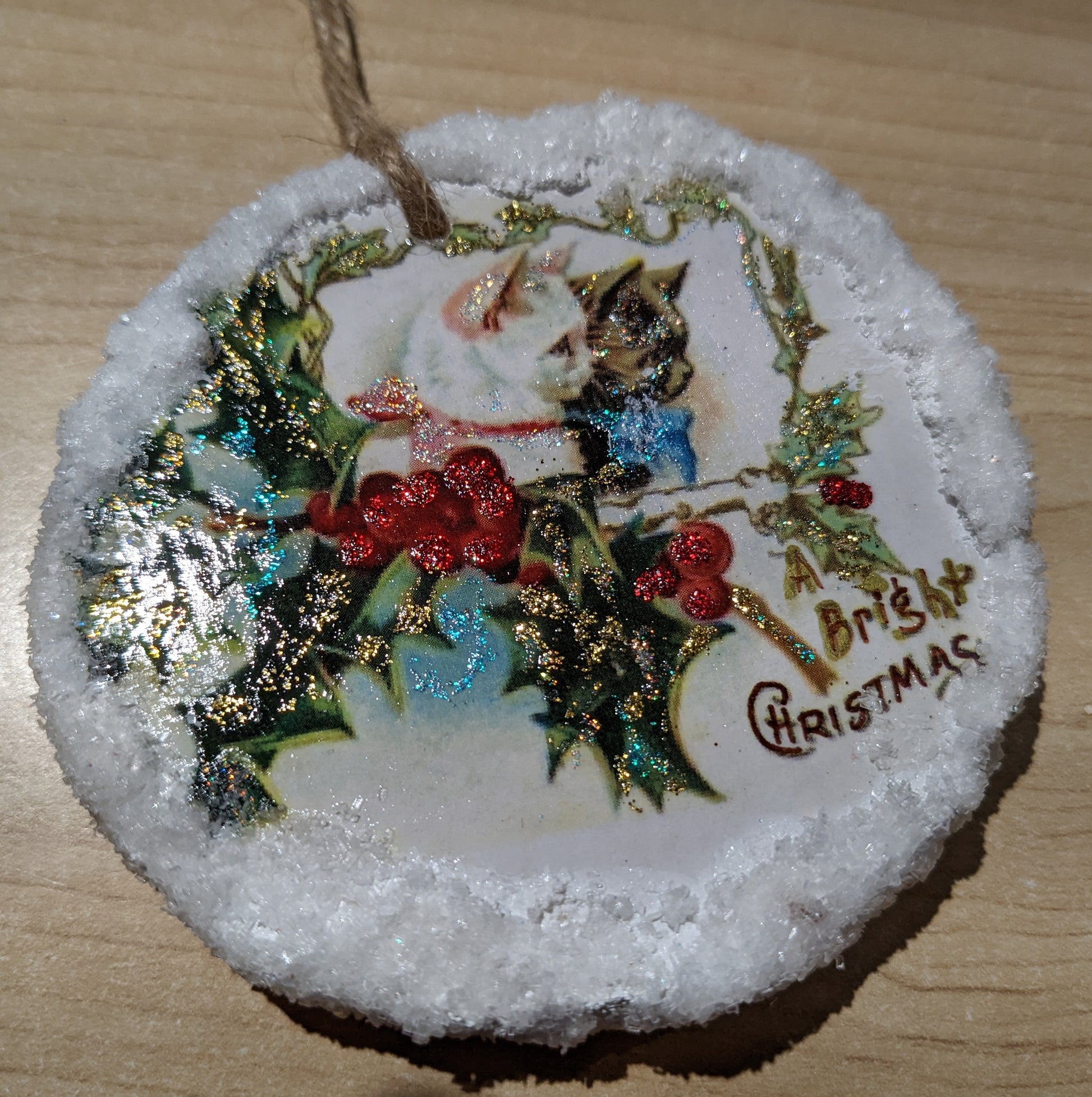 Made with real wood slices and frosted with "snow," these lovely annual favorites are reminiscent of times gone by.