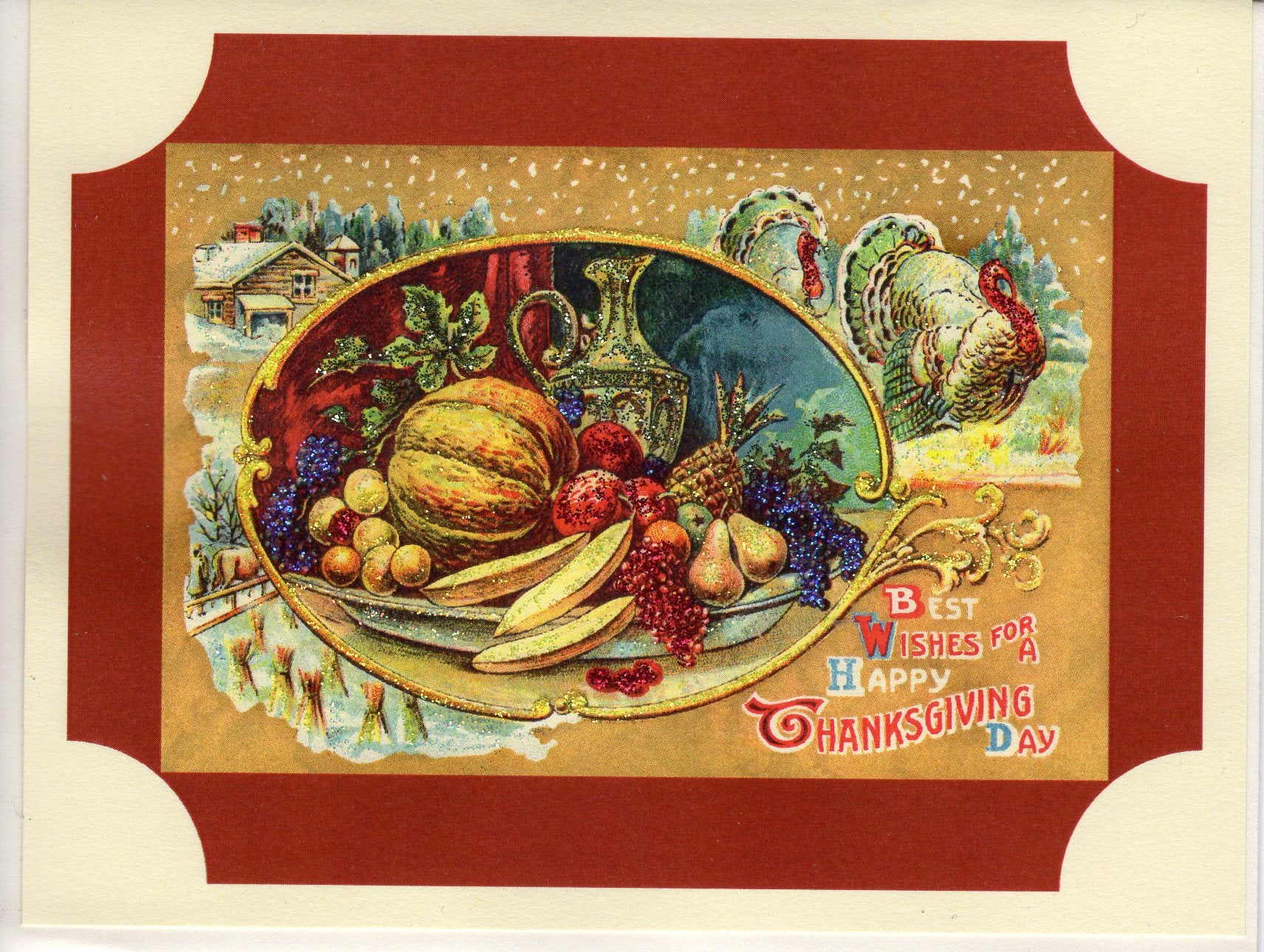 Thankful Bounty ~ Best Wishes Thanksgiving Day Glitter Card