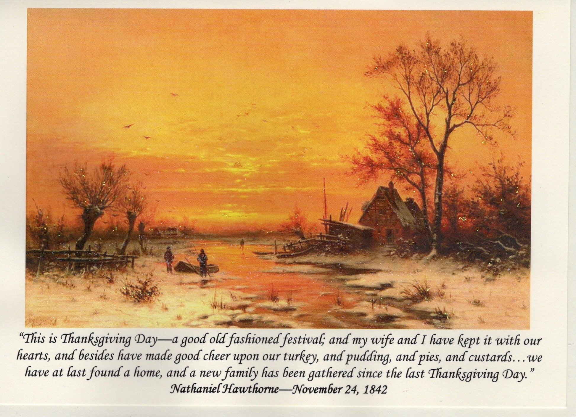 Inspired by one of Hawthorne Thanksgiving quotes, this holiday card is designed with a few lines of sentiment taken from his journal and a painting of the period.