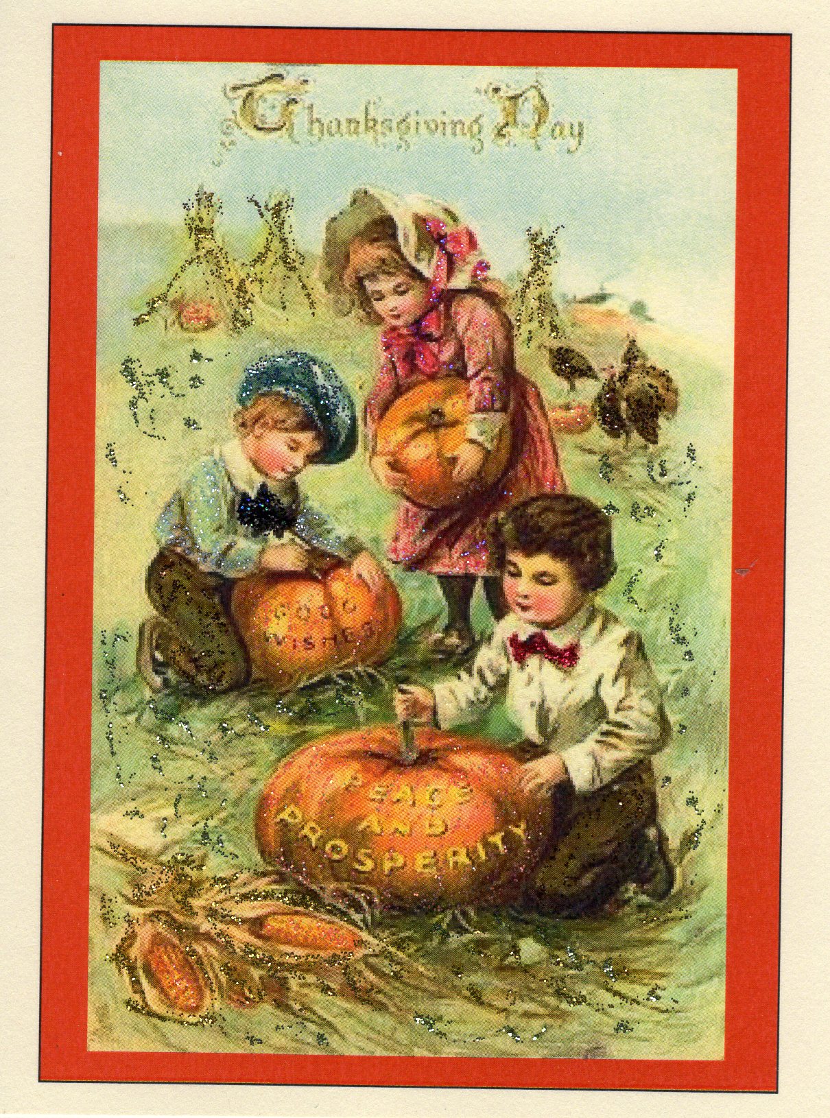 Thanksgiving Day, Peace and Prosperity Children ~ Glitter Card