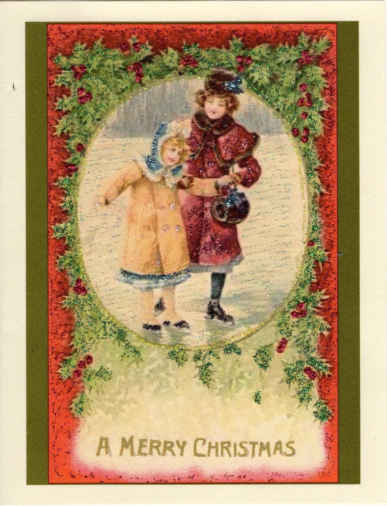 Inspired by an Edwardian-era Christmas Cards, these note cards are very reminiscent of the period, delicately detailed with colored glitter. Many postcards and greeting cards in the 1800s and 1900s were embellished with a hint of the sender's glitter. Designed exclusively by The Marble Faun.