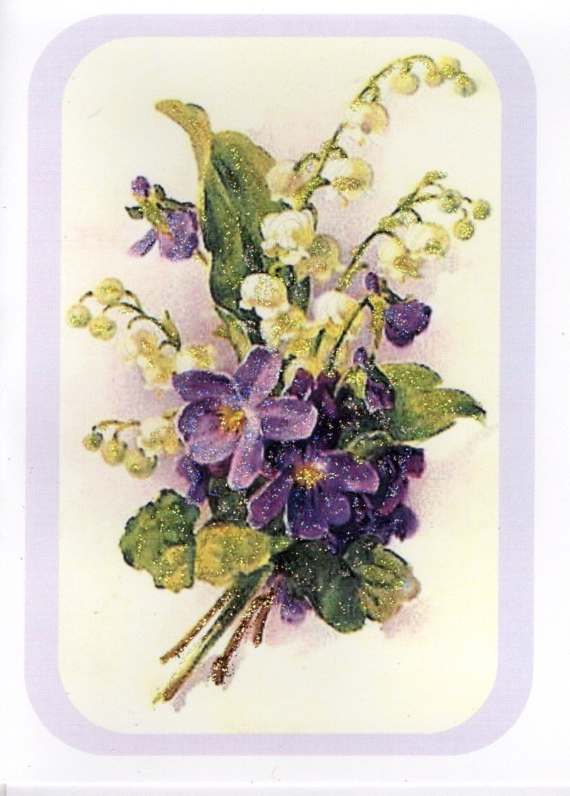 Violets & Lilies of the Valley Bouquet Glitter Card