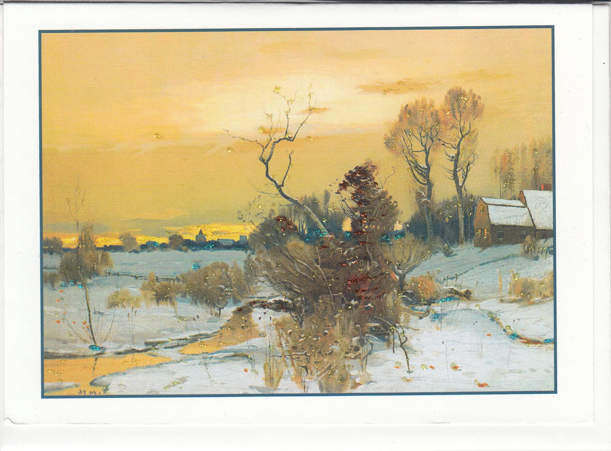 Winter New England Landscape Glitter Card